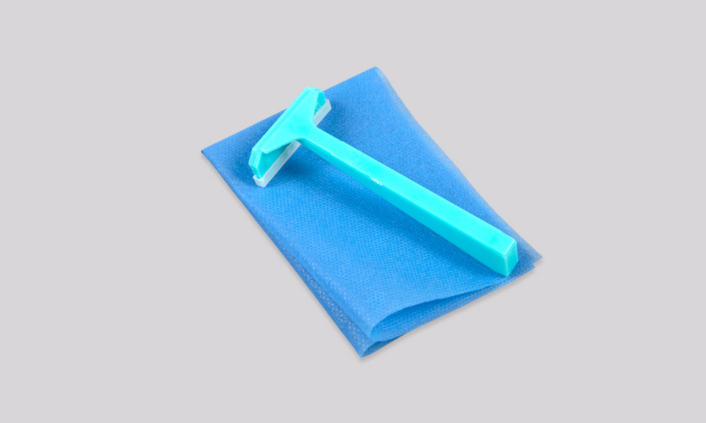 [結構及組成] Ⅰ型由剃毛刀、無紡布組成。Ⅱ型由剃毛刀、薄膜手套、無紡布或衛生紙、海棉或棉球、棉簽組成。其中海棉或棉球中有滑石粉或軟皂液,滑石粉或軟皂液應符合中華人民共和國藥典2015年版的要求。